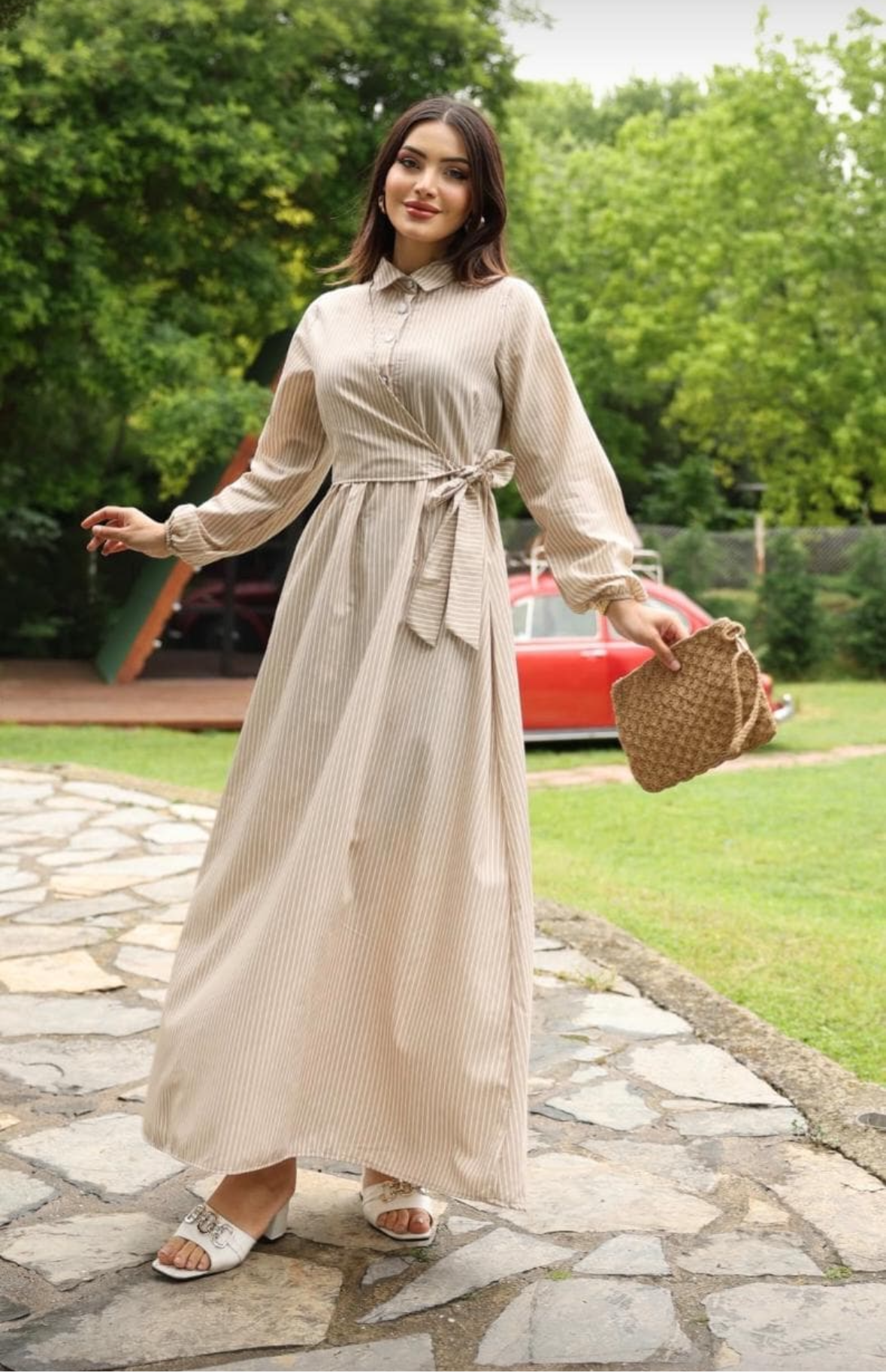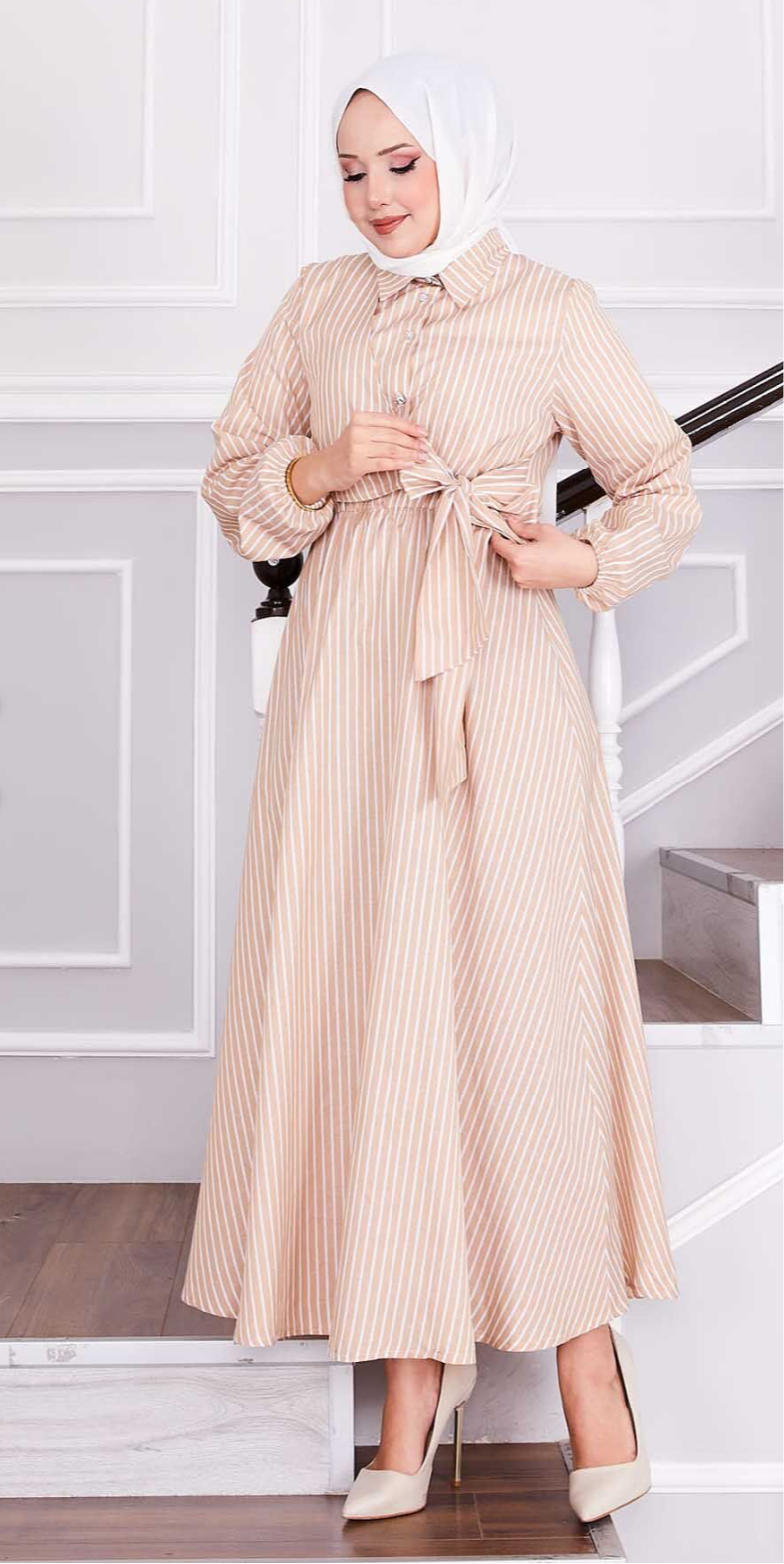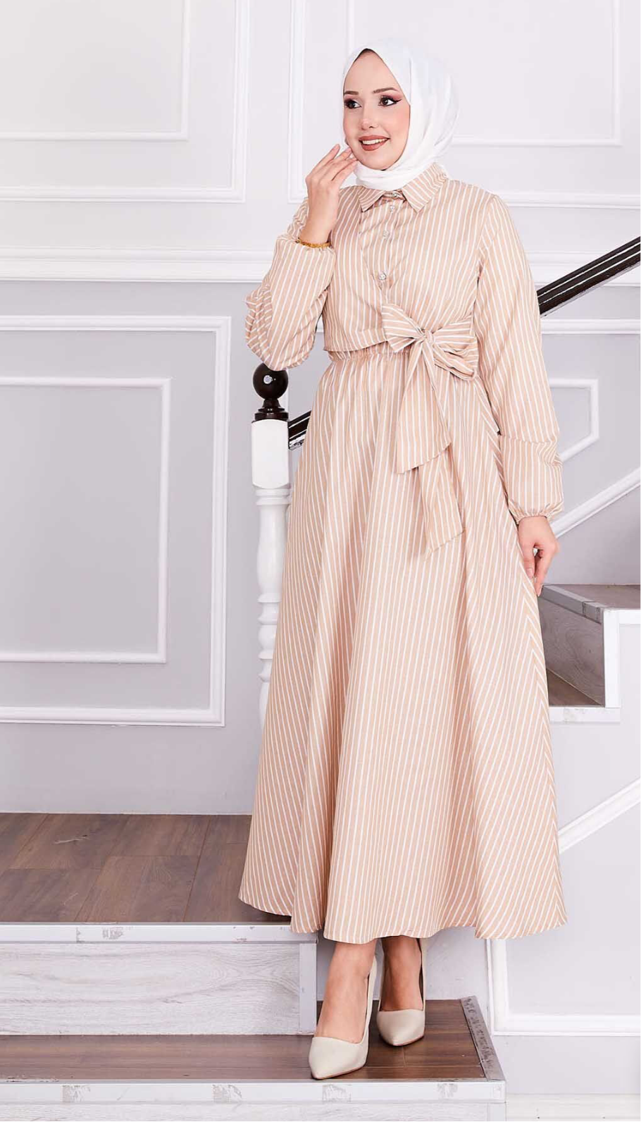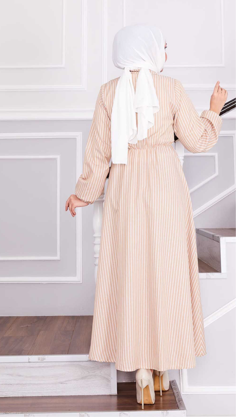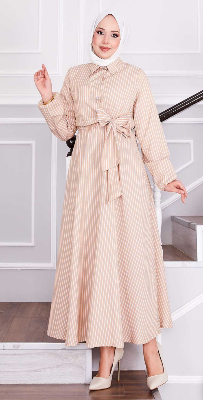 Sophia Beige Lines Dress
