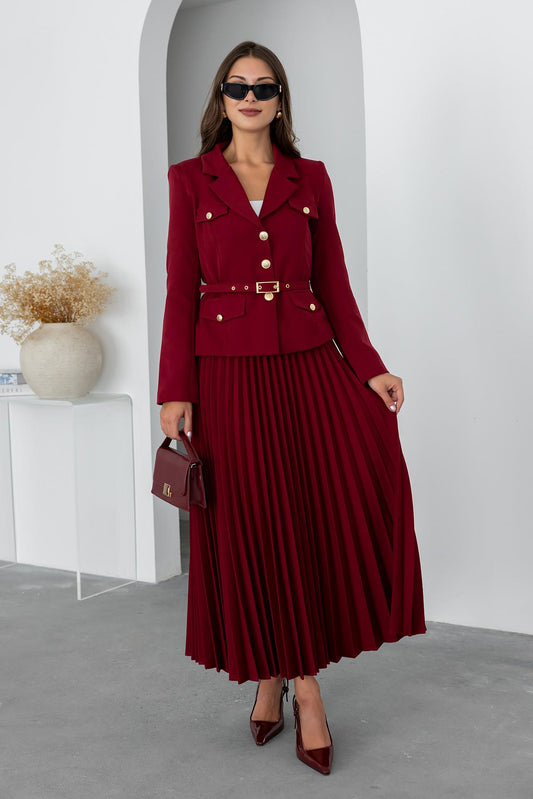 Valeria Burgundy Skirt Set